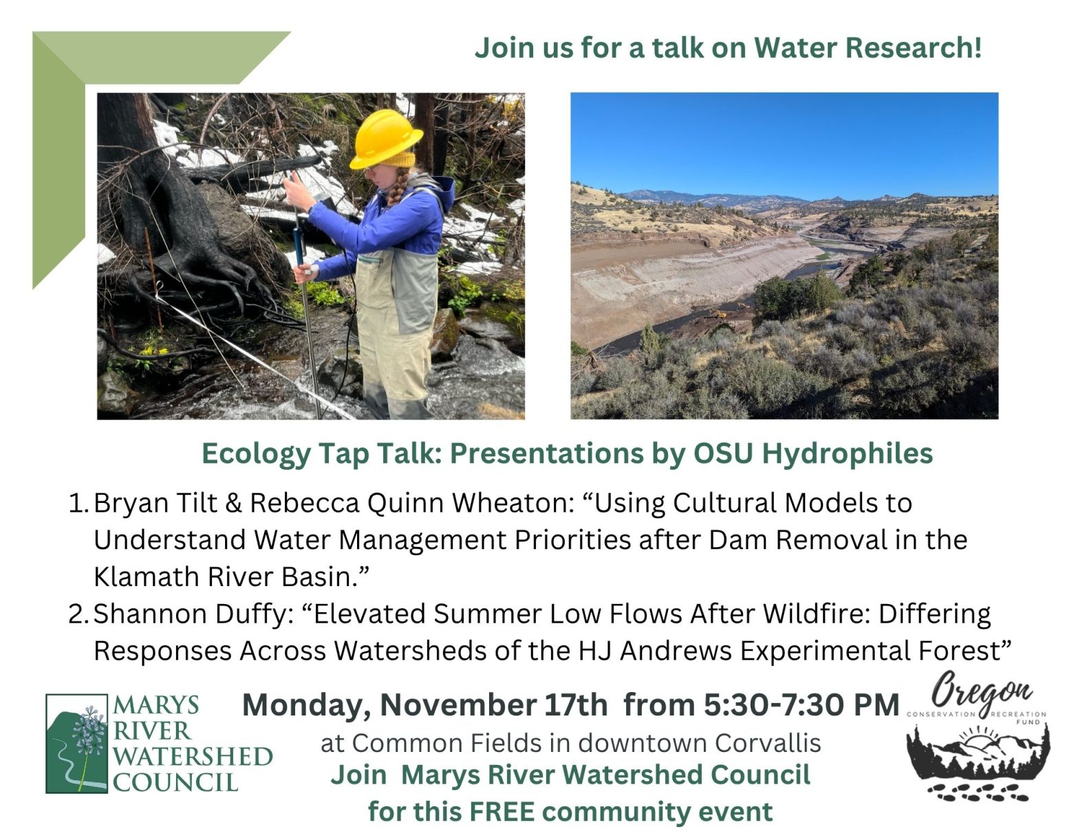 Common Fields generously donates 10% of proceeds from the night to the Marys River Watershed Council.
