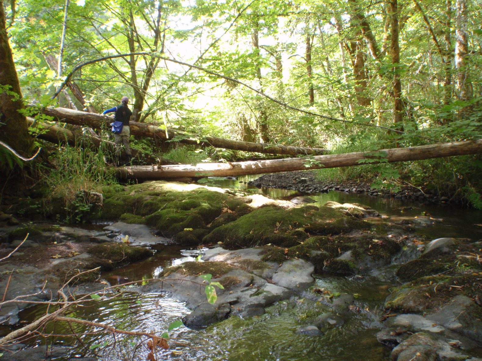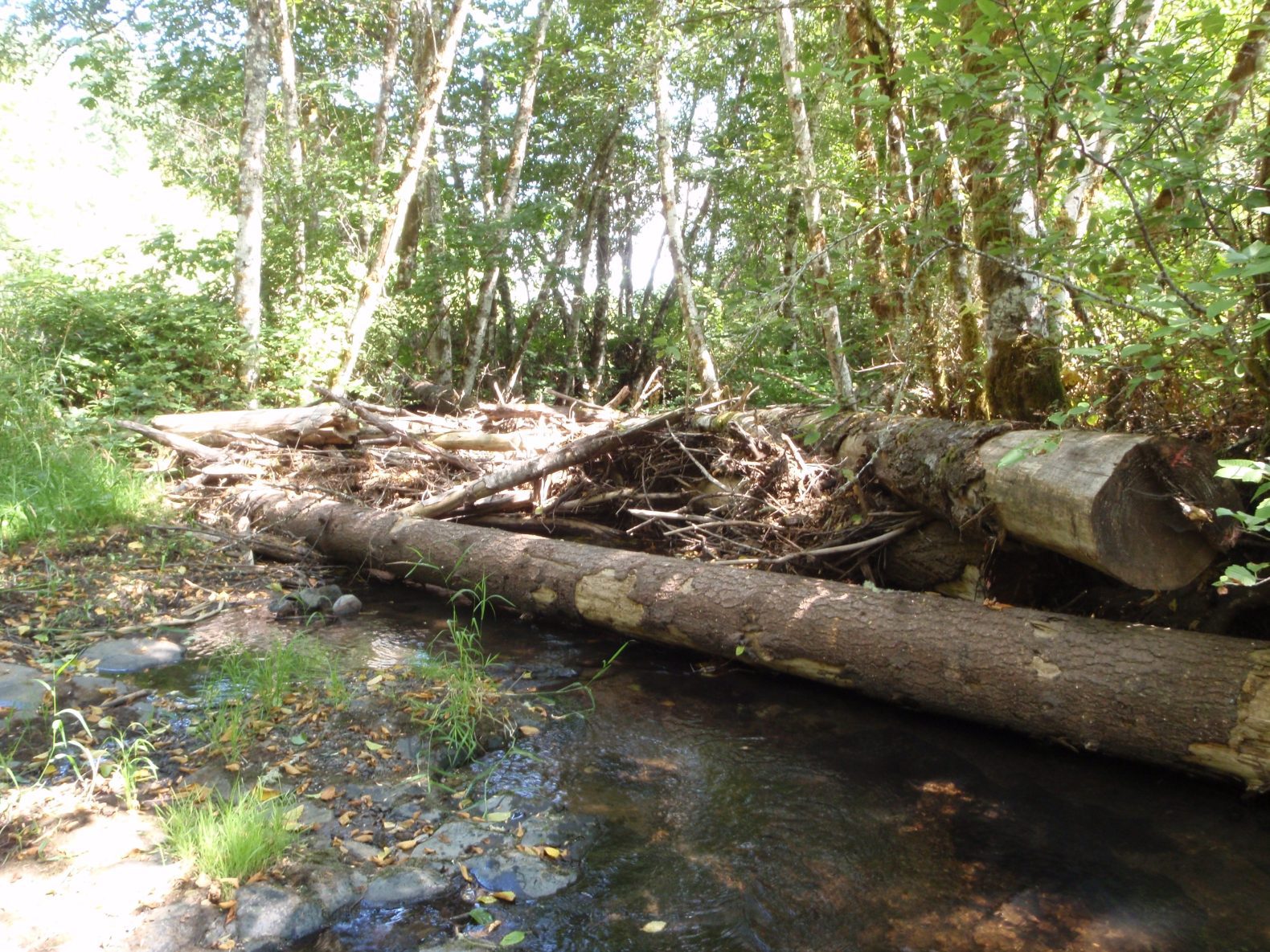 Woods Creek is a tributary of the Marys River with populations of cutthroat trout and Pacific lamprey. The creek is one of the few in the Marys River watershed that receives snowmelt from Marys Peak, making it a valuable stream for salmonids. Stream cleaning and streamside vegetation removal have hurt habitat quality in Woods Creek. Marys River Watershed Council has installed large woody debris structures, replanted streamside vegetation, and retrofitted a pond outlet to help Woods Creek reach its highest potential.